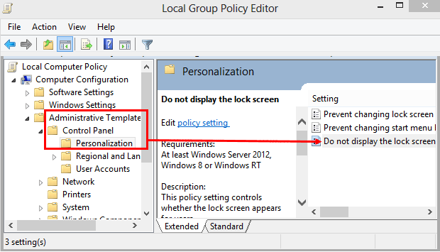 - Click twice on Do not display the lock screen.